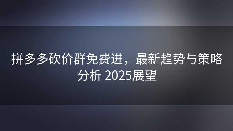 拼多多砍价群免费进,最新趋势与策略分析 2025展望