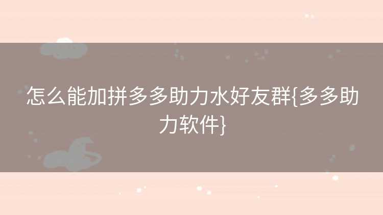 加入拼多多助力水好友群是参与拼多多助力活动的一种有效方式,通过了解拼多多助力活动、寻找群组、掌握加入技巧、提高助力成功率以及注意相关事项,你可以更顺利地加入群组,成功参与拼多多助力活动,希望本文能为你提供帮助,祝你在拼多多助力活动中取得好成绩。