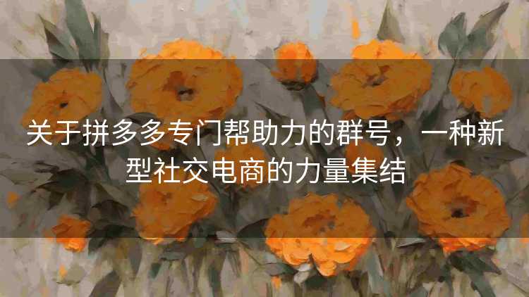 随着互联网的快速发展,社交电商已经成为一种新兴业态,拼多多作为其中的佼佼者,以其独特的社交团购模式赢得了广大消费者的喜爱,而在拼多多的生态系统中,一种专门帮助力的群号也逐渐进入人们的视野,本文将探讨这种群号的出现背景、作用以及影响力。