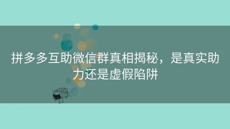 随着互联网的发展,社交电商的兴起带来了许多创新模式和玩法,拼多多作为其中的佼佼者,以其独特的团购模式和优惠活动吸引了大量用户,随着拼多多的日益普及,一种名为“拼多多互助微信群”的现象逐渐兴起,引发了广大网友的关注和讨论,这些互助群是真实存在的助力平台,还是隐藏在背后的虚假陷阱?本文将对此进行深入探讨。