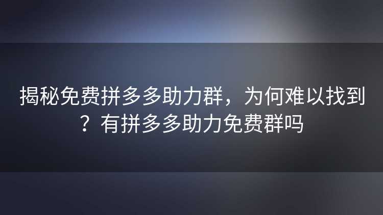 揭秘免费拼多多助力群,为何难以找到?有拼多多助力免费群吗