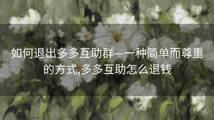 如何退出多多互助群—一种简单而尊重的方式,多多互助怎么退钱