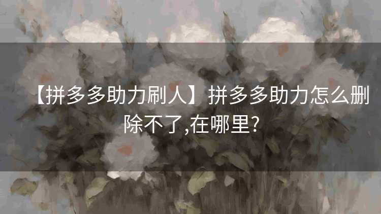 随着互联网的发展,电商平台的优惠活动日益丰富,拼多多作为其中的佼佼者,其助力活动深受用户喜爱,在使用拼多多的过程中,有些用户遇到了一个问题:拼多多助力怎么删除不了?在哪里操作?本文将针对这一问题进行详细解答。